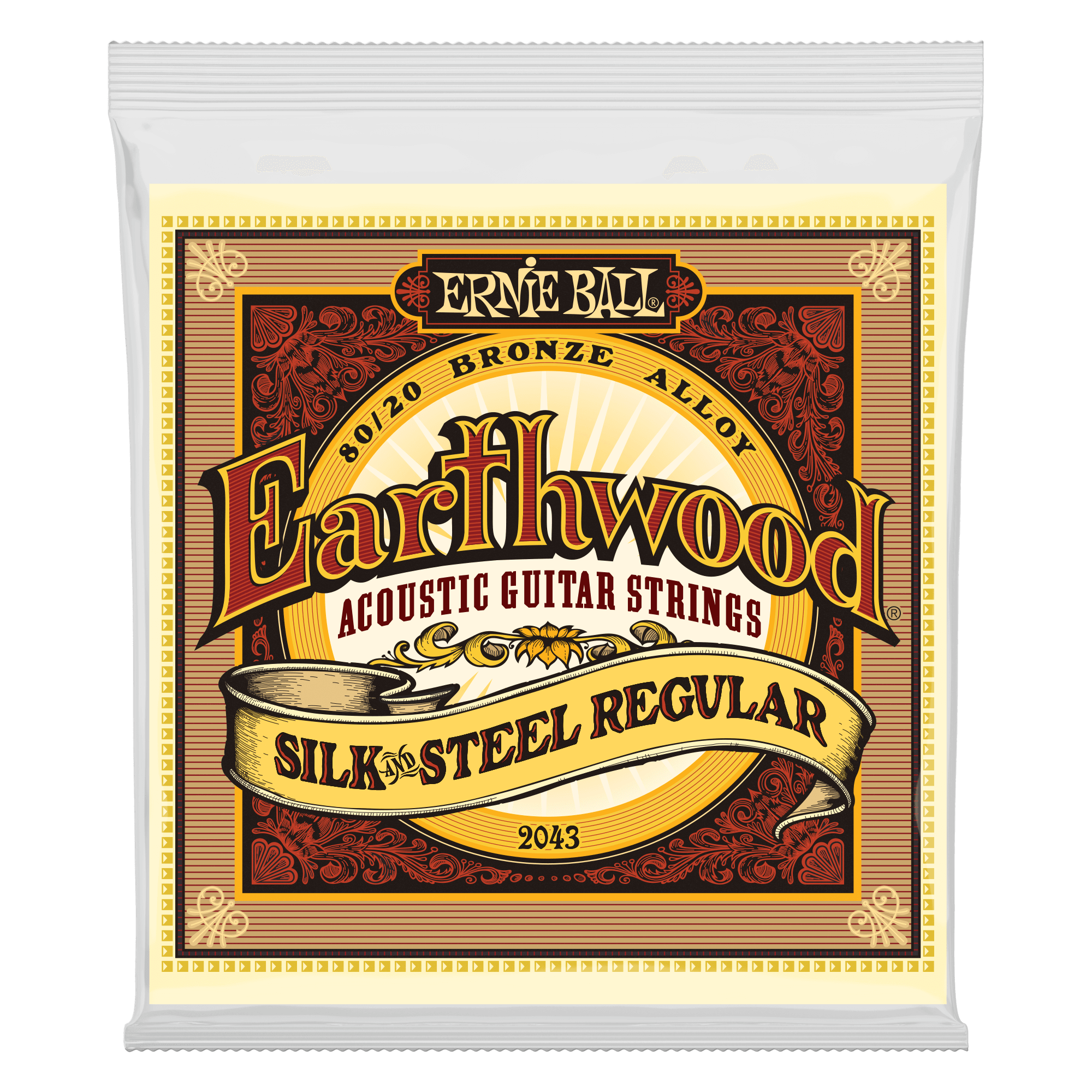 Ernie Ball Earthwood Silk & Steel Regular 80/20 Bronze acoustic guitar strings are made with an 80/20 bronze alloy wrap, along with a layer of silk between the wrap and steel core. The silk produces a more mellow sound and makes the string feel more comfortable while reducing finger noise. Gauges .013, .017, .026, .034, .046, .056