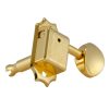 Beautiful machine heads with the classic round button, the 98 Series provides smooth, sure tuning. Heavily plated finish with a striking contrast to the brass gears. Screws and bushing included. With a 14:1 gear ratio.