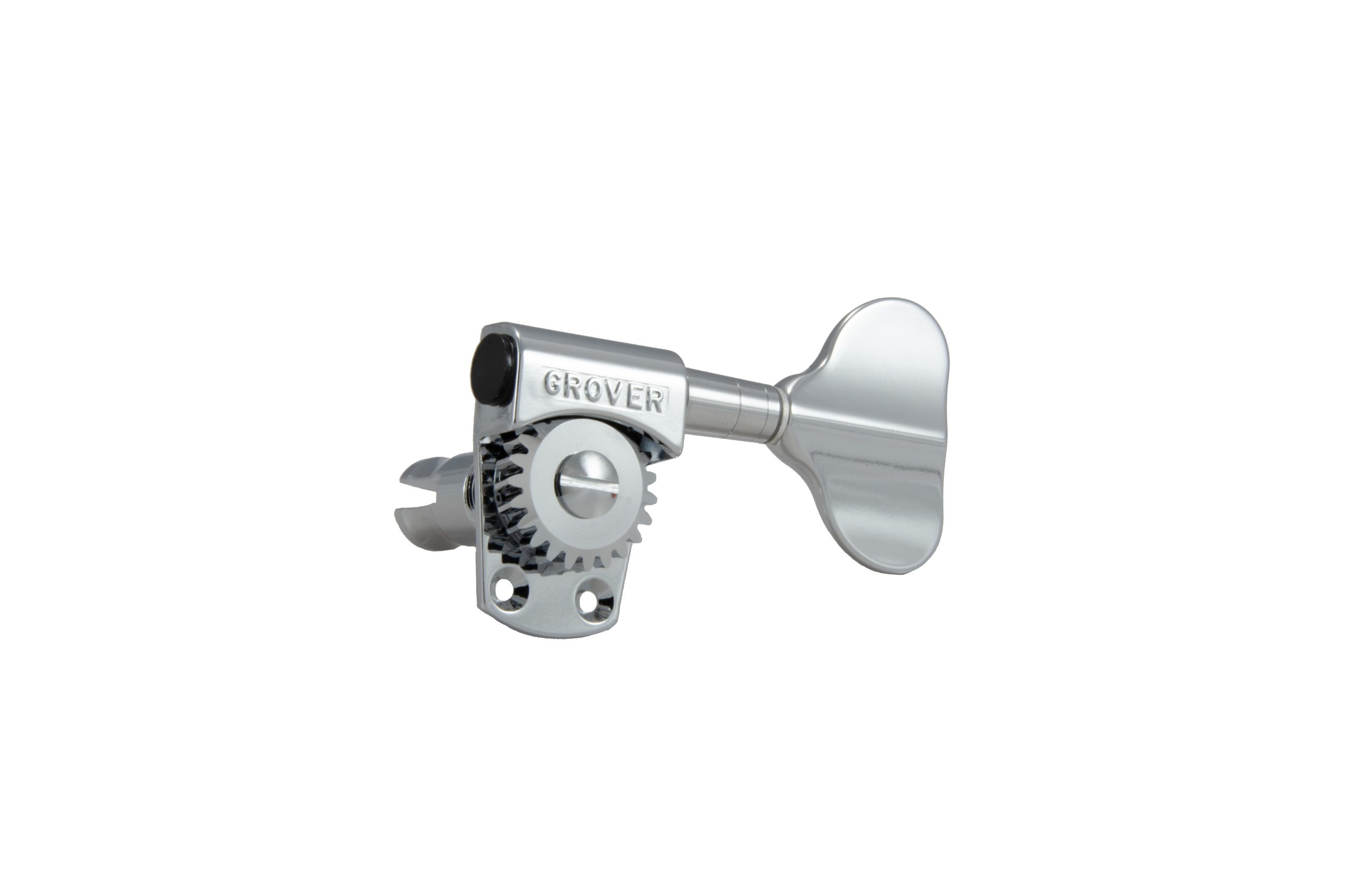 SELF ALIGNING THRUST BEARINGS! Gear ratio is 20:1. Special butterfly button. Durable cast housing. End thrust bearings. Worm meshes perfectly with gear. Safety-type string posts with cutaway shoulders to provide slip-over. Two screws in housing apron provide greater holding power. May be used with ALL modern bass guitar headpieces. Individually hand tested. Screws and bushings included.