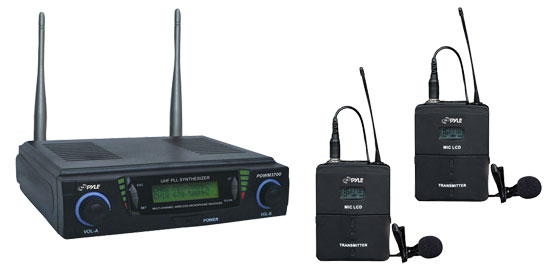 Professional UHF Dual Channel Wireless Microphone System with 2 Adjustable Frequency Body Pack Transmitters & 2 Headset/Lavalier Mics RBPDWM3700