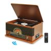 Retro Vintage Classic Style Bluetooth Turntable Phonograph Record Player, Vinyl-to-MP3 Recording, AM/FM Radio, CD & Cassette Tape Players RBPTCDCS32BT